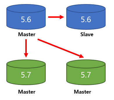 아래와 같이 구축하고 점검시에 5.7 서버 2대를 Master/Slave로 구성한다.